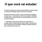 O material é composto por resumos esquematizados em mapas mentais dos artigos da Constituição Federal que tratam da educação.