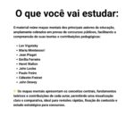 O material reúne mapas mentais dos principais autores da educação, amplamente cobrados em provas de concursos públicos, organizados de forma clara, comparativa e esquematizada, facilitando a compreensão das teorias e suas contribuições pedagógicas.